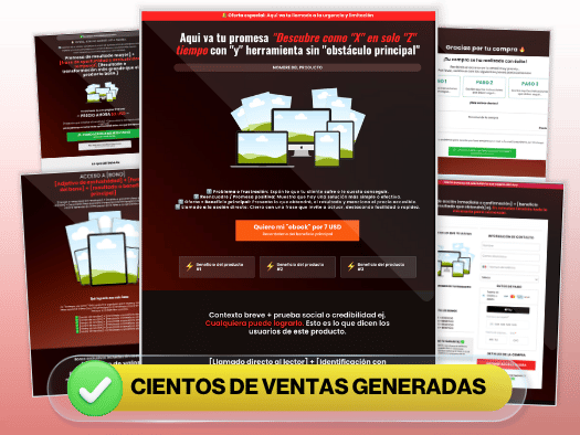 Las estructuras están diseñadas con el mismo orden psicológico de los embudos que más venden. Páginas listas para facturar.