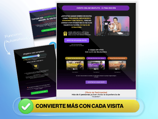 Un taller online 100% práctico y guiado paso a paso donde te enseñaré exactamente cómo personalizar tus plantillas y lanzar tu primer embudo de ventas de alta conversión en menos de 30 minutos, incluso si nunca has creado una página web antes.